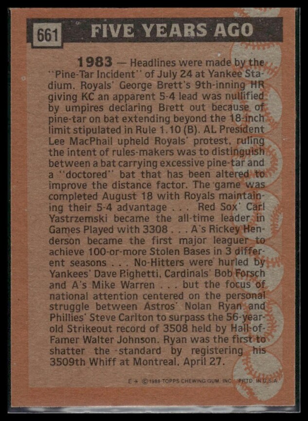 You are purchasing a 1988 Topps Nolan Ryan #661. You will receive the exact item in the photographs. Thank you for looking.