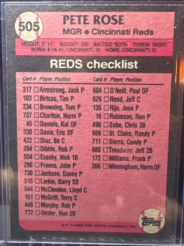 1989 Topps #505 - Pete Rose - Cincinnatie Reds - Manager