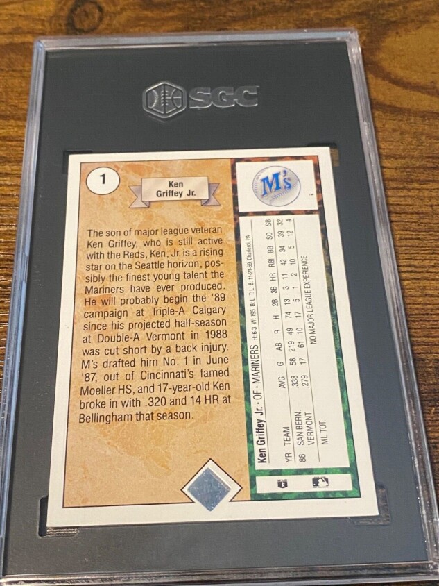 1989 Upper Deck Ken Griffey Jr #1 Rookie Base Set SGC 7