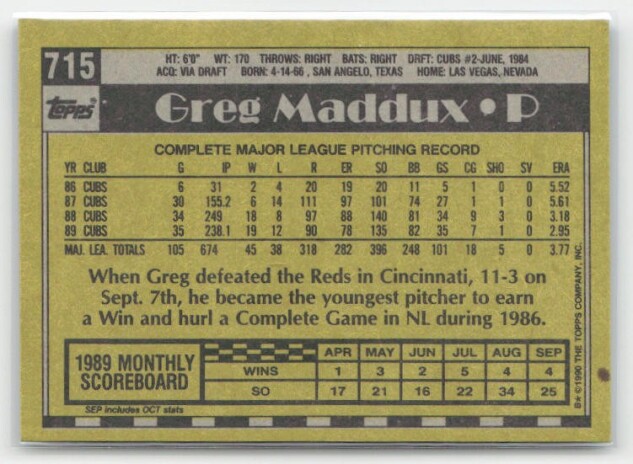 You are purchasing a 1990 Topps Greg Maddux #715. You will receive the exact item in the photographs. Thank you for looking.
