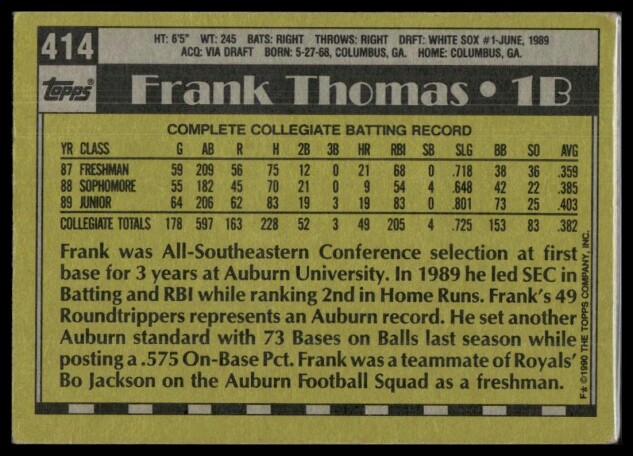 You are purchasing a 1990 Topps Frank Thomas #414a ICONIC,RC. You will receive the exact item in the photographs. Thank you for looking.