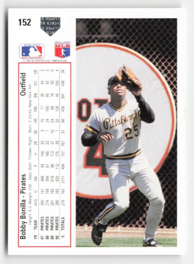 You are purchasing a 1991 Upper Deck Bobby Bonilla #152. You will receive the exact item in the photographs. Thank you for looking.