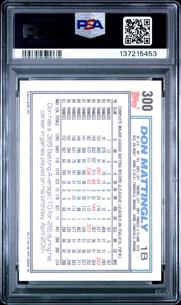 ⚾️1992 Topps Don Mattingly..PSA 9!⚾️