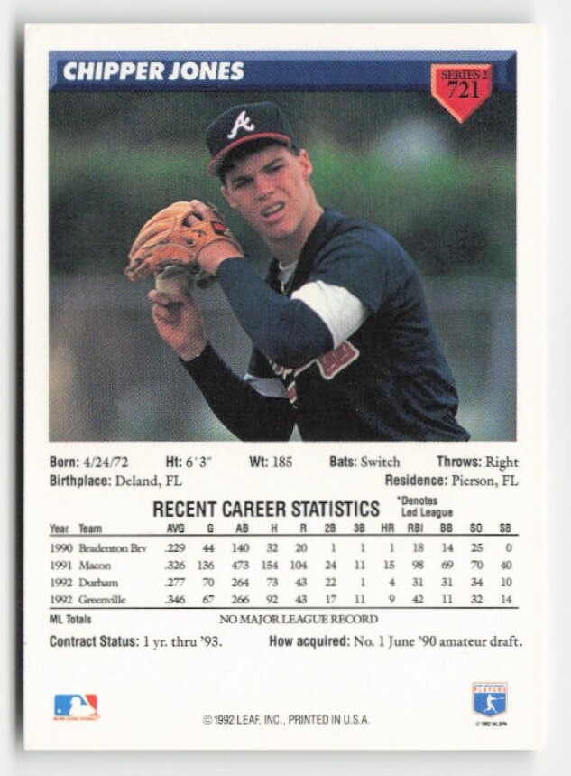 1993 Donruss #721 Chipper Jones