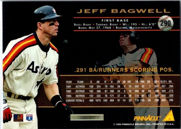 This is a nice example of a 1994 Pinnacle #290 Jeff Bagwell