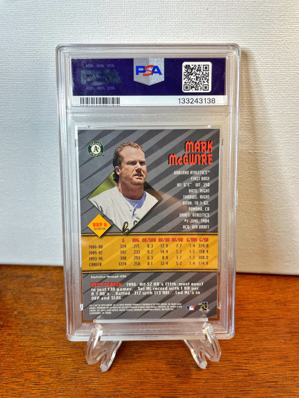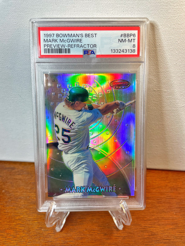 This is (1) 1997 Bowman's Best Previews MARK MCGWIRE Refractor PSA 8 Athletics #BBP 6. Thank you for checking out my listing!