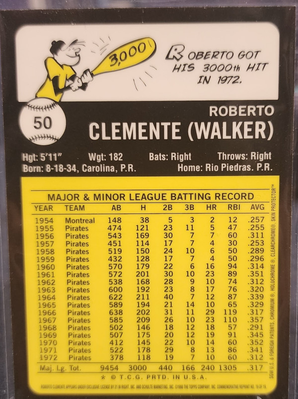 1998 Topps Chrome 1972 Roberto Clemente Reprint