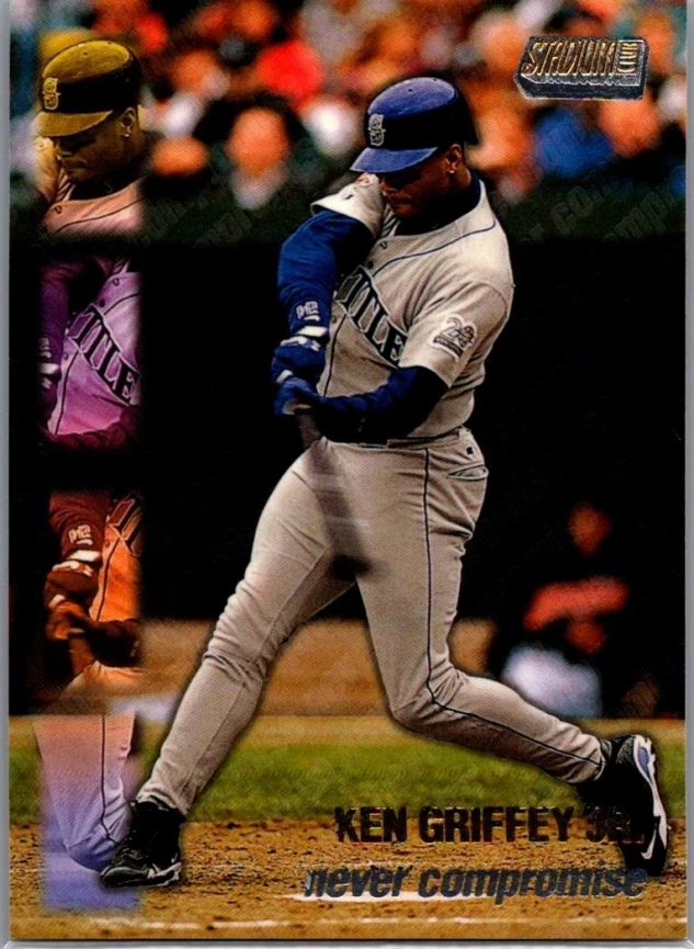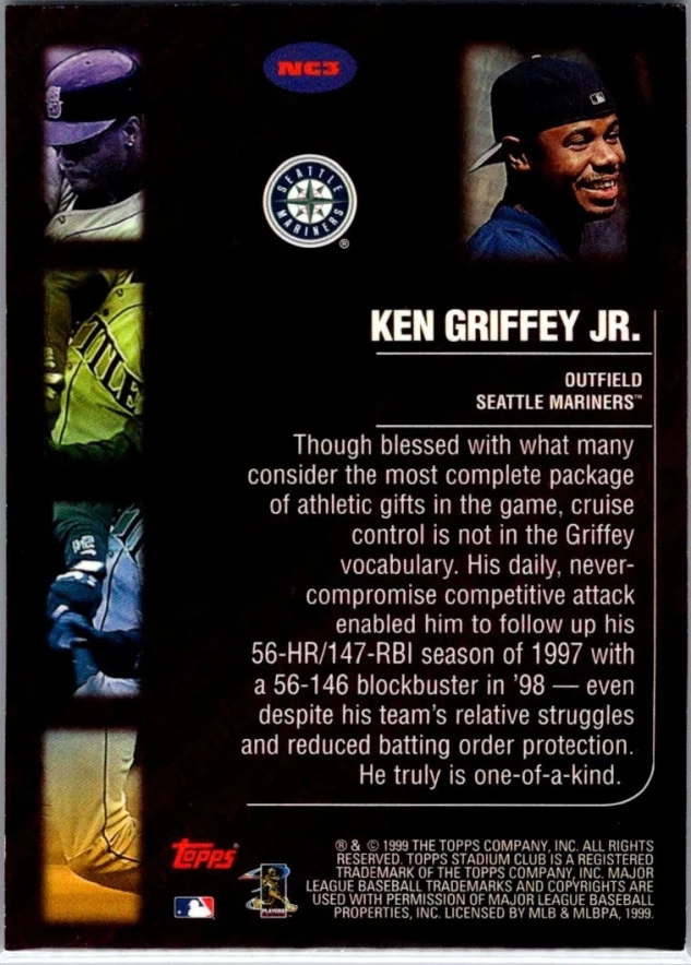 This is a nice example of a 1999 Stadium Club #NC3 Ken Griffey Jr. Never Compromise