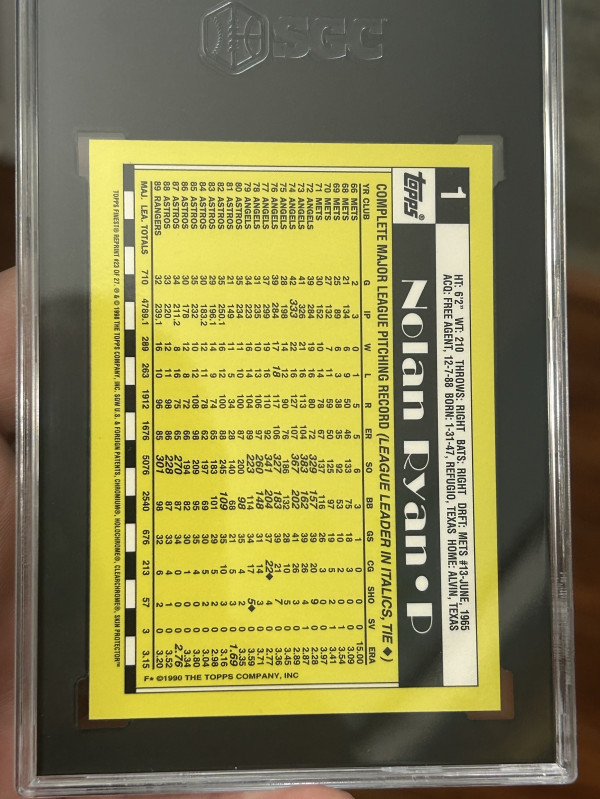1999 Topps Finest Reprint Nolan Ryan Sgc 9.5