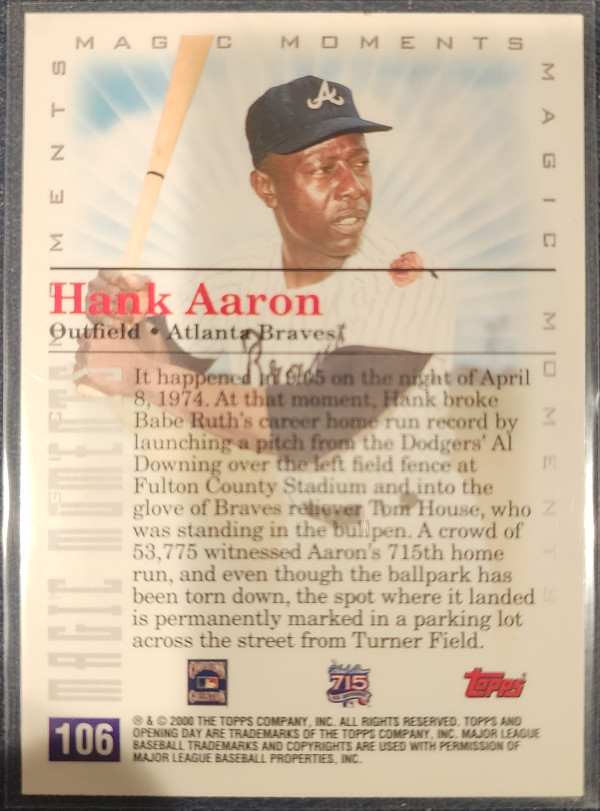 2000 Topps Hank Aaron 715th Hone Run