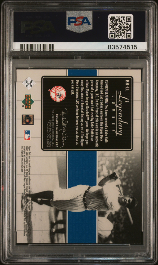 Own a piece of baseball history with this extraordinary card! This centerpiece is a PSA 9 Graded Babe Ruth Game-Used Bat Legendary Lumber card, a rare gem showcasing the Sultan of Swat’s iconic legacy. This high-grade collectible is a must-have for any serious collector.