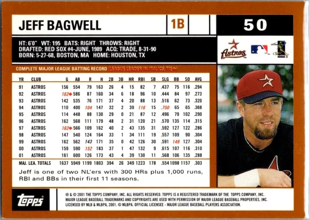 This is a nice example of a 2002 Topps #50 Jeff Bagwell