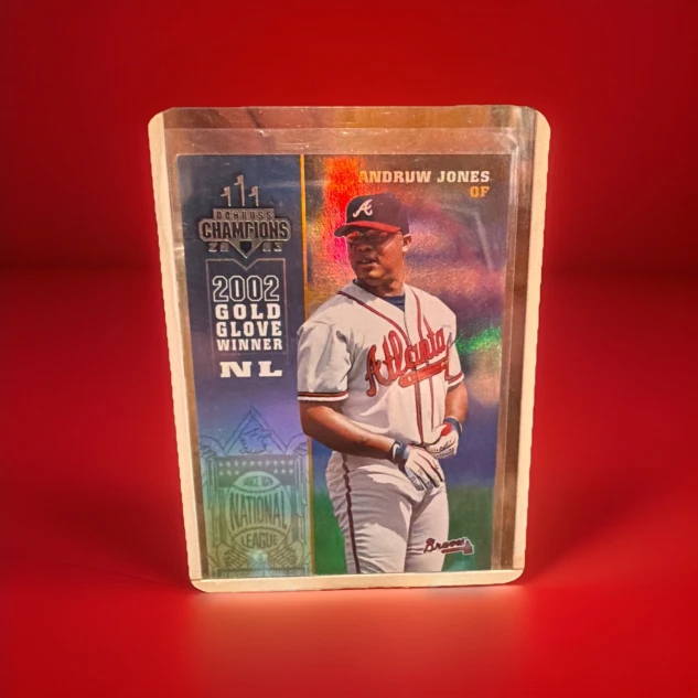 The product is a 2003 Donruss Champions trading card featuring Andruw Jones of the Atlanta Braves. This card is a highly collectible Holofoil parallel with a limited print run of only 25 copies. It is an original card made of card stock and is part of the base set for the 2003 Donruss Champions collection. The card is serial numbered and comes with English language text, making it a valuable addition to any baseball card collection.