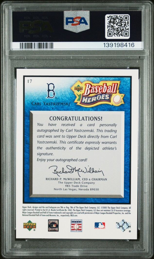 You are purchasing a 2005 Upper Deck Baseball Heroes Carl Yastrzemski Signature Blue PSA 9. You will receive the exact item in the photographs. Thank you for looking.