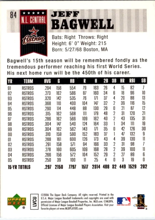 In 2006 Jeff Bagwell played for the Houston Astros.