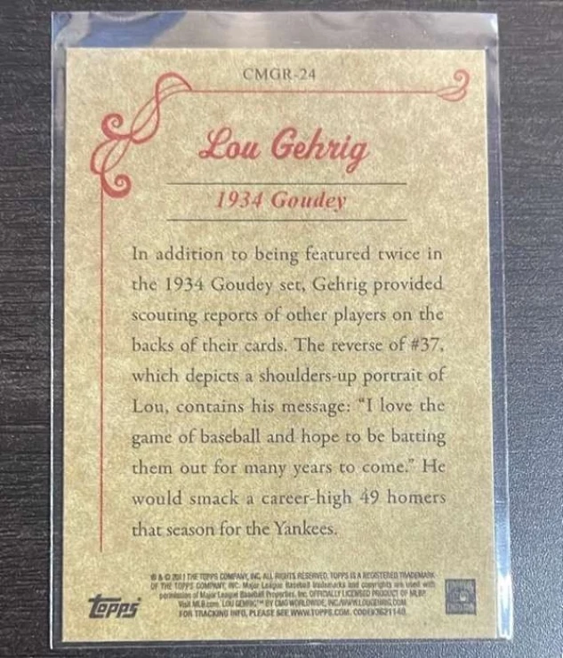 This is a nice example of a 2011 Topps - CMG Reprints #CMGR-24 Lou Gehrig