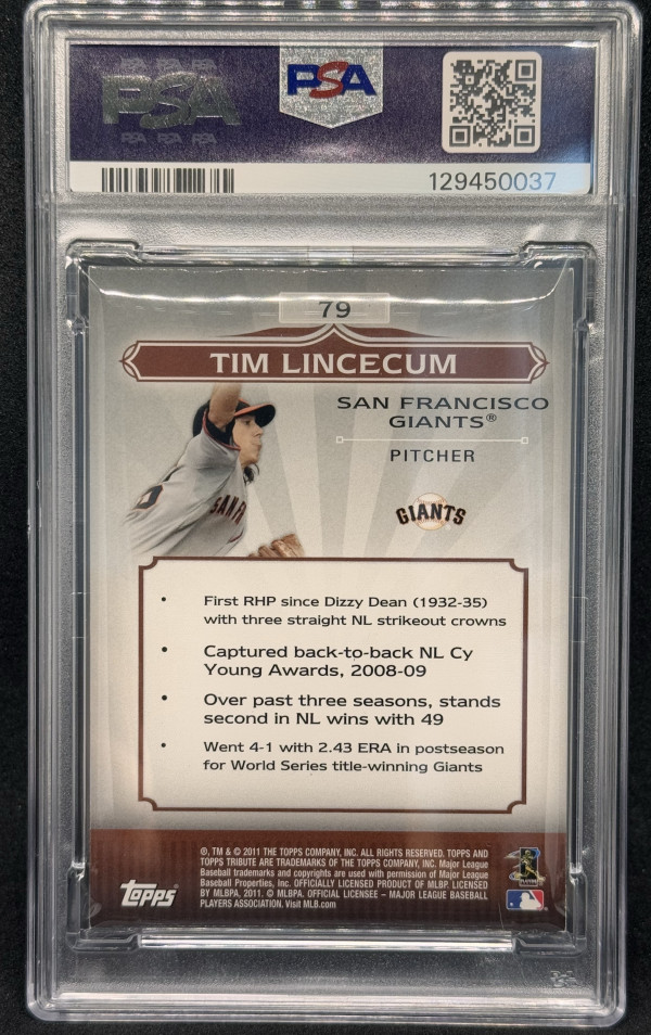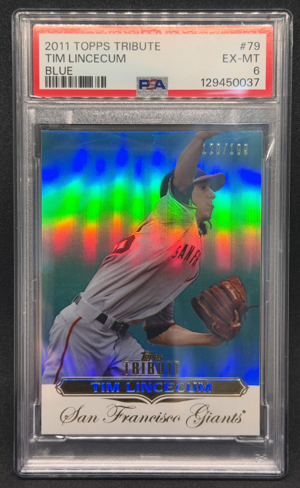 2011 TOPPS TRIBUTE #79 TIM LINCECUM BLUE 120/199 PSA 6 - Giants