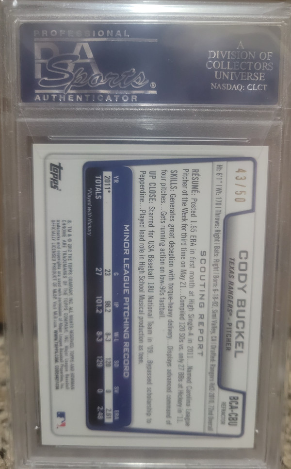2012 Bowman Chrome Cody Buckel Prospects Blue Wave Refractor Autograph