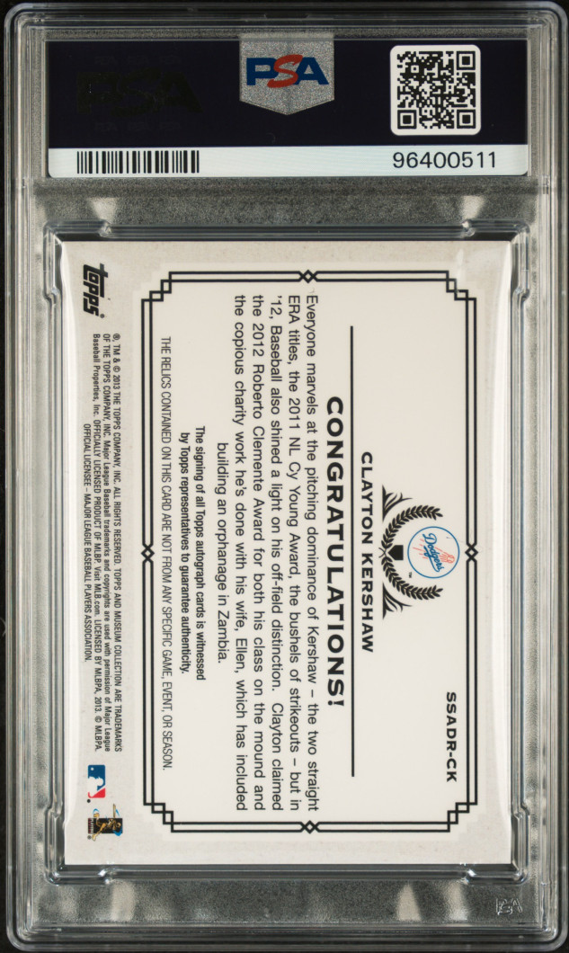 2013 Topps Museum Collection Signature Swatches Dual Relic Autograph Clayton Kershaw S.s.dual Relic Auto.-Gold