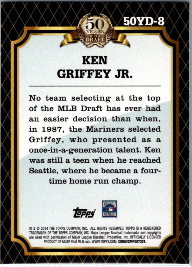 This is a nice example of a 2014 Topps #50YD-8 Ken Griffey Jr. 50 Years of the Draft