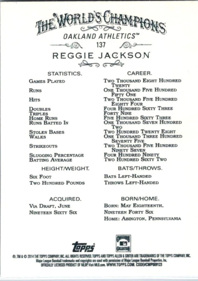 This is a nice example of a 2014 Topps Allen & Ginter #137 Reggie Jackson