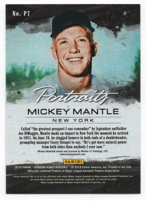 2018 Panini Diamond Kings Portraits #P7 Mickey Mantle