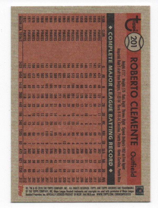 2018 Topps Archives 1981 Topps Design #201 Roberto Clemente
