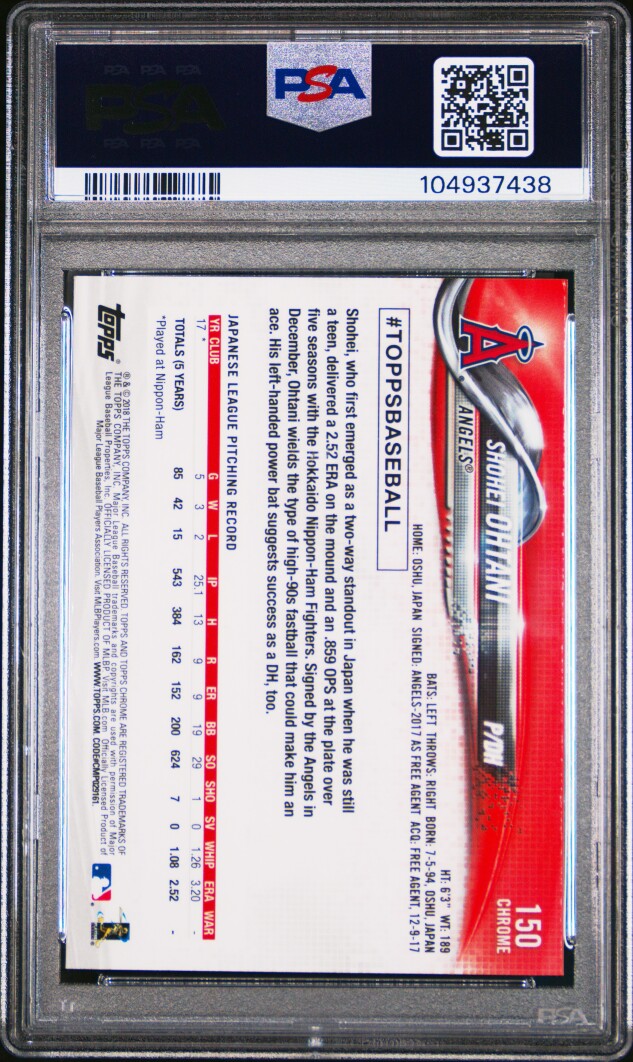 You are purchasing a 2018 Topps Chrome Shohei Ohtani #150 Pitching Rookie PSA 10. You will receive the exact item in the photographs.