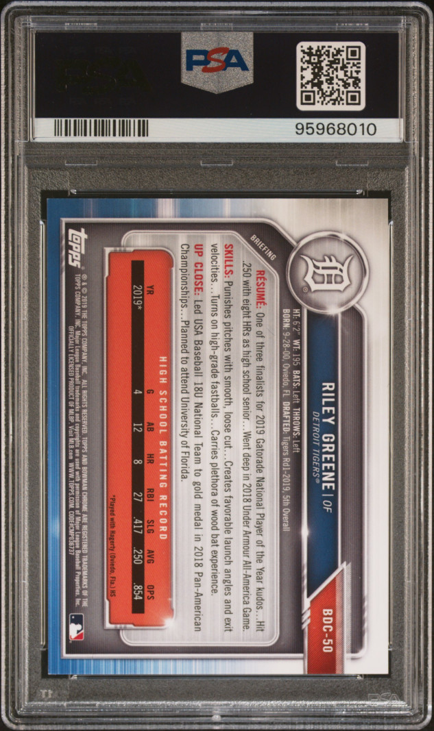 2019 Bowman Draft Riley Greene Chrome-W/Bat-Red Ref.