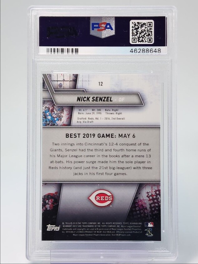 You are purchasing a 2019 Bowman's Best Nick Senzel #12 Atomic Refractor GEM MINT RC PSA 10. Thank you for looking.