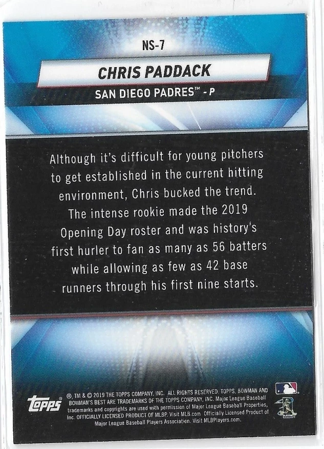 2019 Bowman's Best Chris Paddack Neophyte Sensations RC #NS-7.