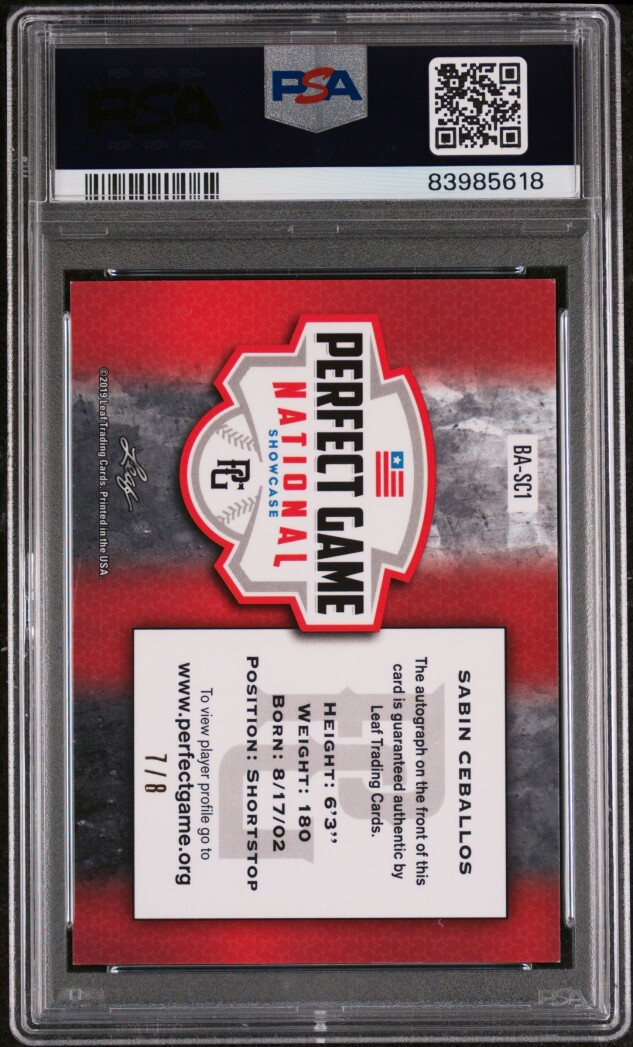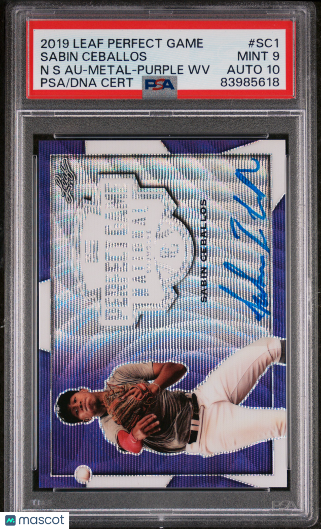 You are purchasing a 2019 Leaf Perfect Game Sabin Ceballos #SC1 Purple Auto /8 PSA 9 Auto 10. Thank you for looking.