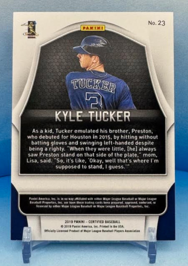 You are purchasing a 2019 Panini Certified Green Kyle Tucker #23 Rookie. You will receive the exact item in the photographs. Thank you for looking.