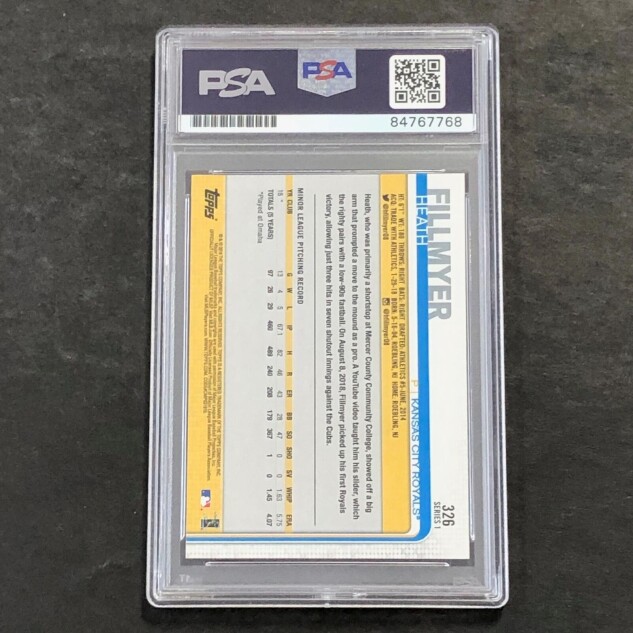 This listing features a 2019 Topps #326 Heath Fillmyer, professionally PSA authenticated.