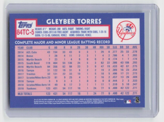You are purchasing a 2019 Topps Chrome Gleyber Torres #84TC-5 1984 Topps Baseball 35th Anniversary. You will receive the exact item in the photographs. Thank you for looking.