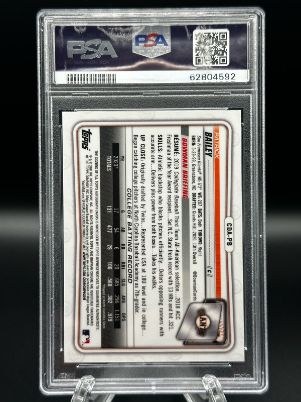 2020 Bowman Chrome Draft Autographs Patrick Bailey Blue Wave PSA 9 /150