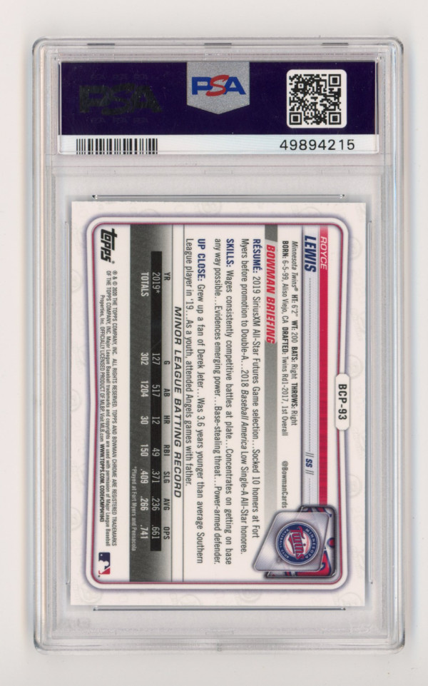 2020 Bowman Chrome ROYCE LEWIS Rookie PROSPECT SAPPHIRE #BCP-93 - GRADED PSA 10
