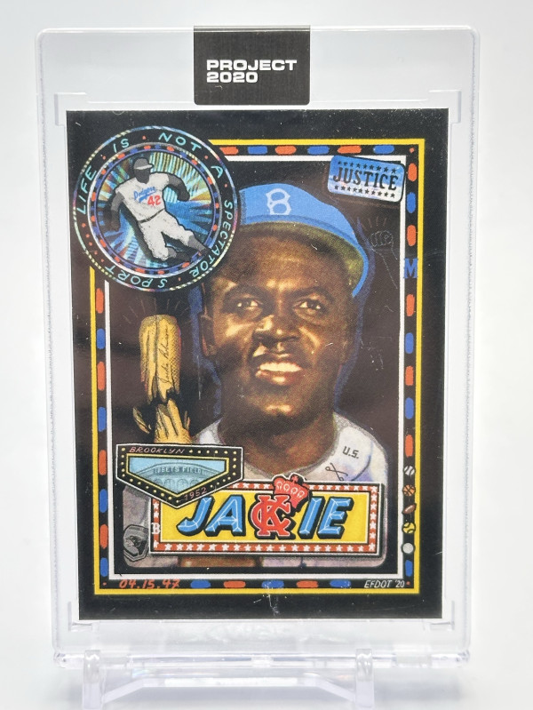 Topps Project 2020 was a 400-card set where 20 contemporary artists reimagined 20 iconic baseball cards, featuring players like Willie Mays, Jackie Robinson, and Mike Trout.