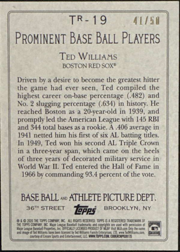 2020 Topps Ted Williams Turnkey Red Blue /50