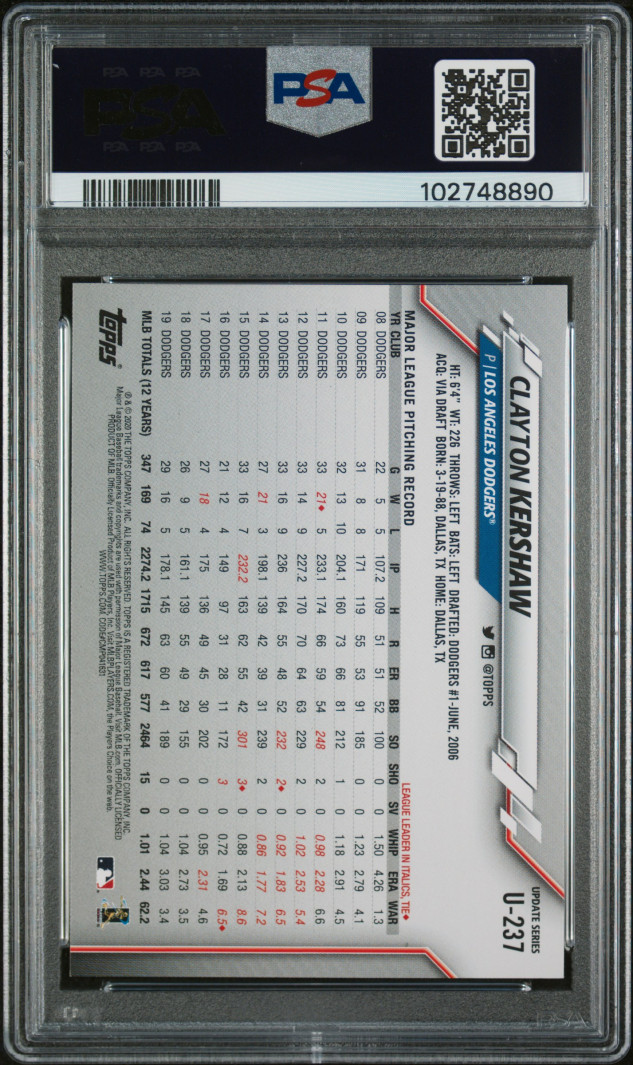 2020 Topps Update #U237 Clayton Kershaw Sp PSA 10