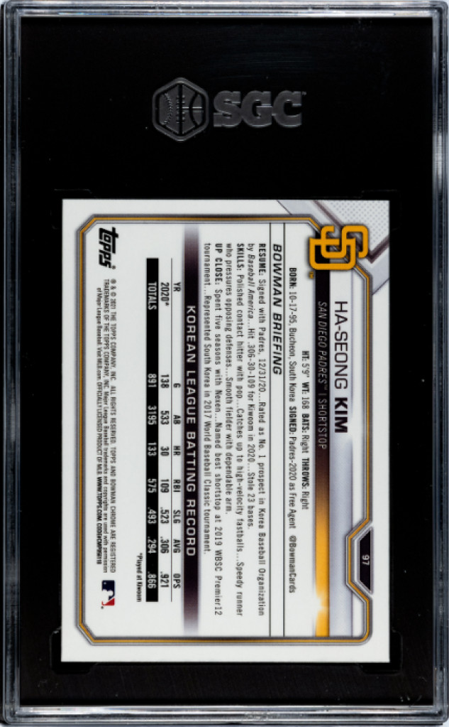 2021 Bowman Chrome Sapphire Ha-Seong Kim SGC 9