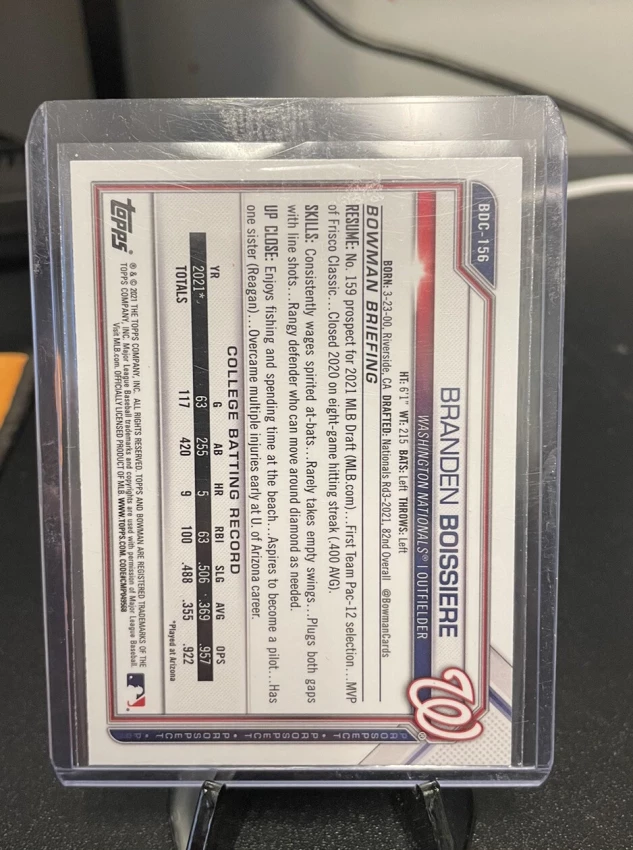 2021 Bowman Draft Chrome Branden Boissiere #BDC-156 1st Bowman Chrome.