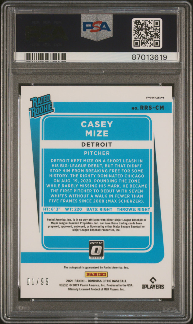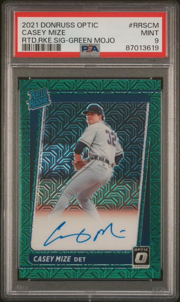 2021 Donruss Optic CASEY MIZE Rookie Card RC GREEN PRIZM AUTO AUTOGRAPH #1/99 - PSA 9 MINT - Detroit Tigers