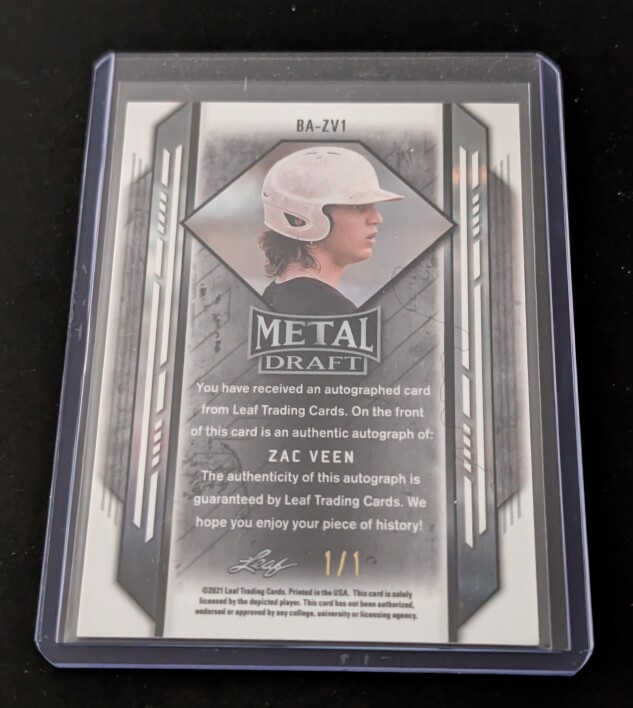 2021 Leaf Metal Draft Zac Veen Gold Circles Auto 1/1 Colorado Rockies