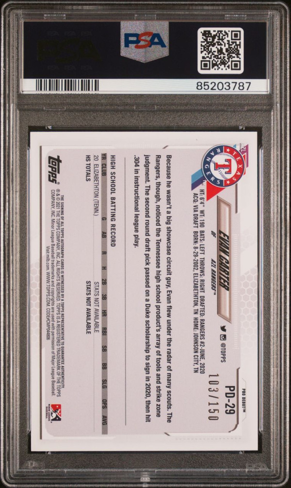 2021 Topps Pro Debut Evan Carter Autograph Blue /150