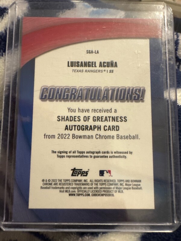 2022 Bowman Chrome Shades Of Greatness Luisangel Acuna Auto #/99