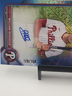 This is the 1st Bowman Chrome Certified Autograph of William Bergolla, one of the most exciting international prospects to sign with the Philadelphia Phillies organization. This stunning Blue Mojo Refractor parallel is numbered 129/150, making it a truly rare piece for any serious prospect collector.