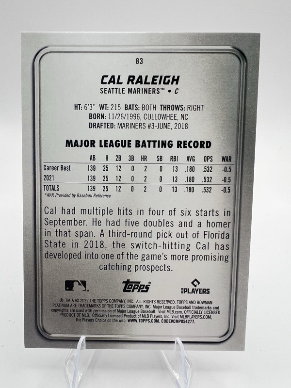 2022 Bowman Platinum - Cal Raleigh #83 Ice Foilboard (RC)