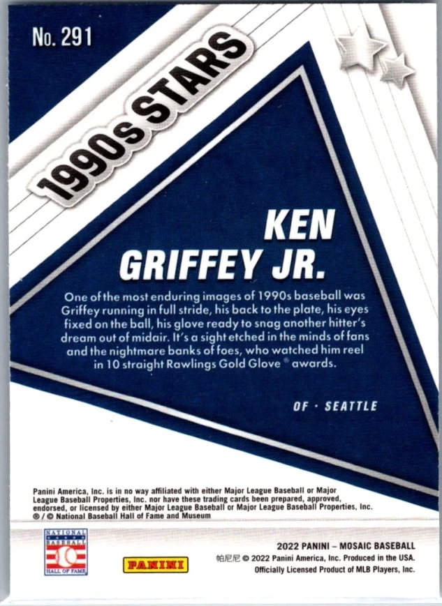This is a nice example of a 2022 Panini Mosaic #291 Ken Griffey Jr.