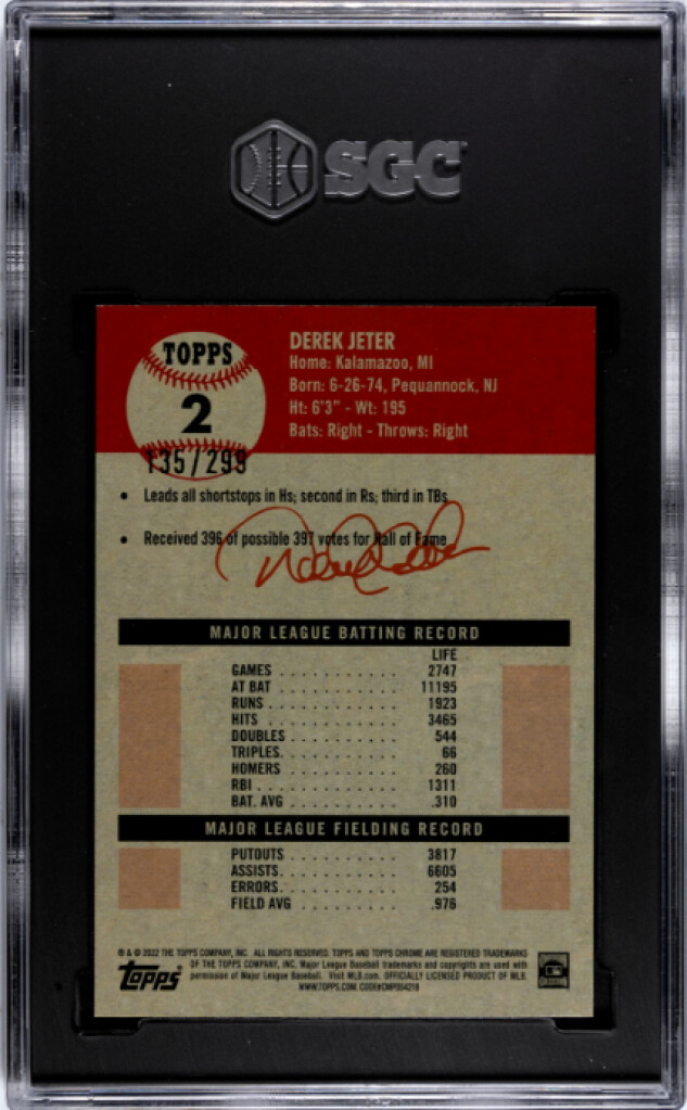 2022 Topps Chrome Platinum Anniversary Derek Jeter SGC 10